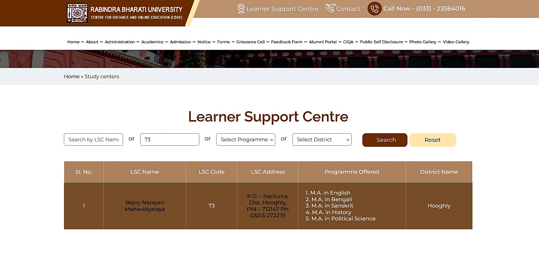 Website of RBU Centre for Distance & Online Education (Click here)