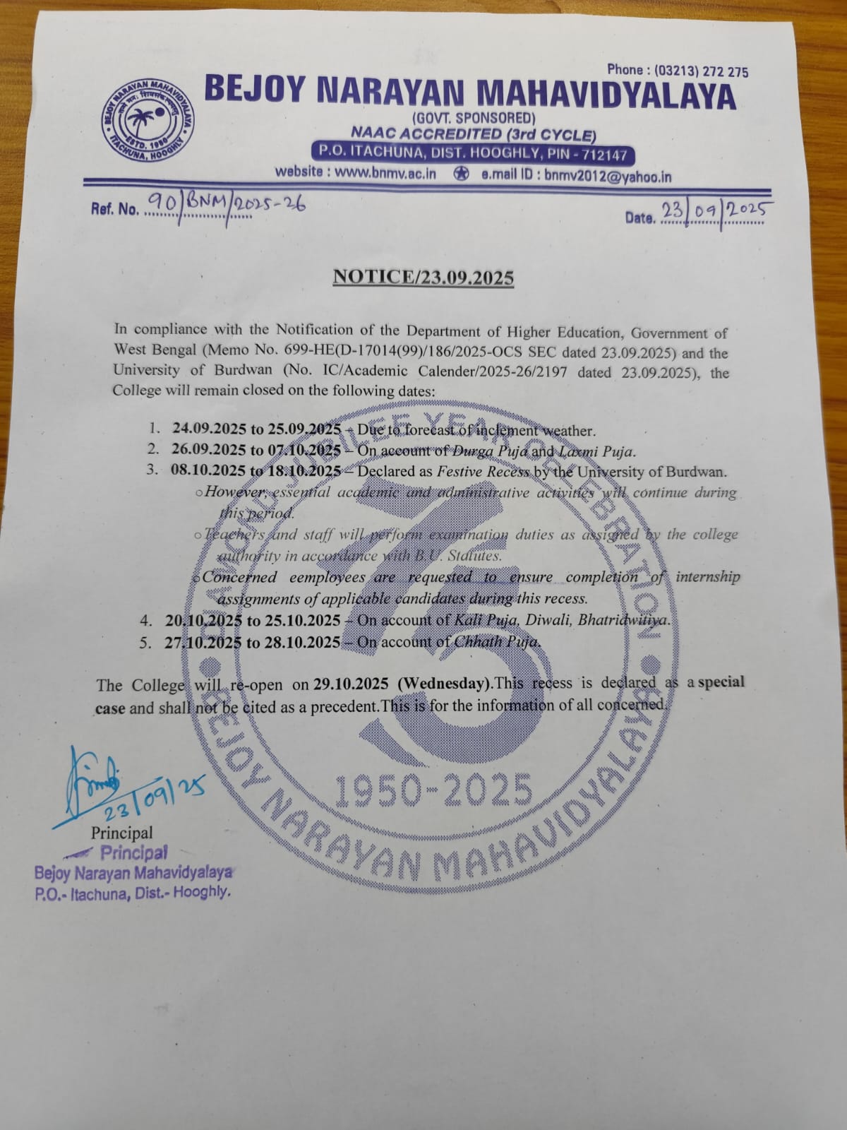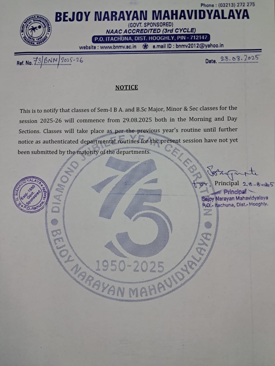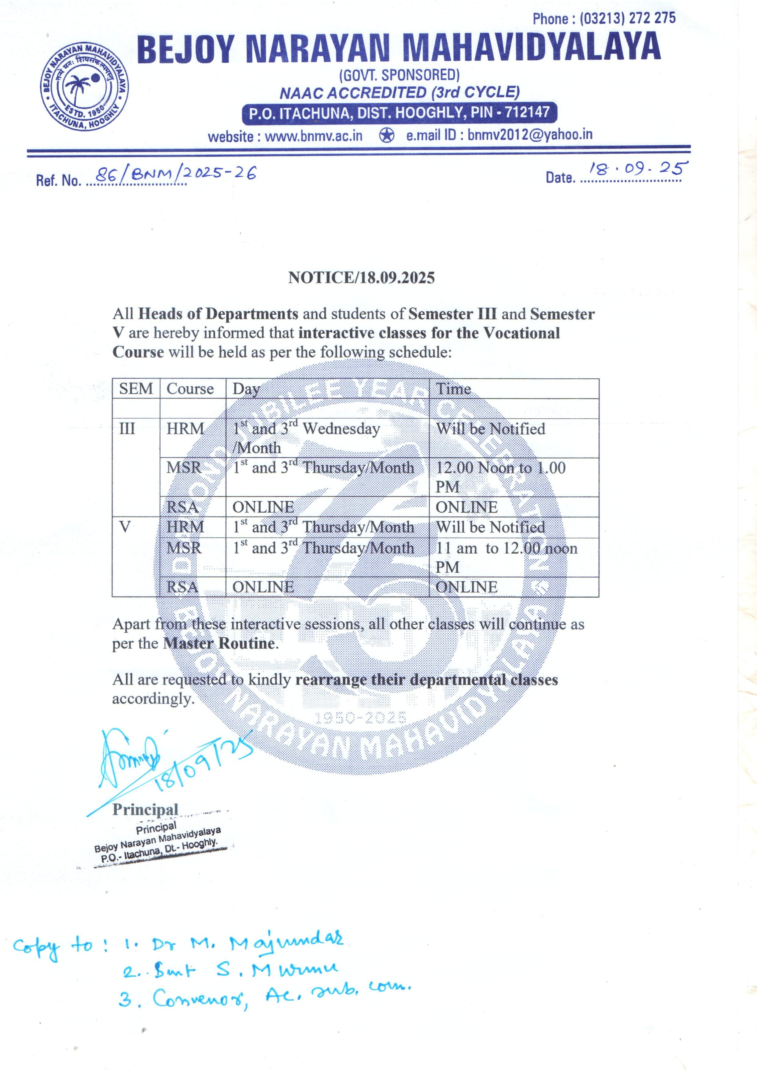 Master Routine Arts (Day) for ODD Semester 2025-26
