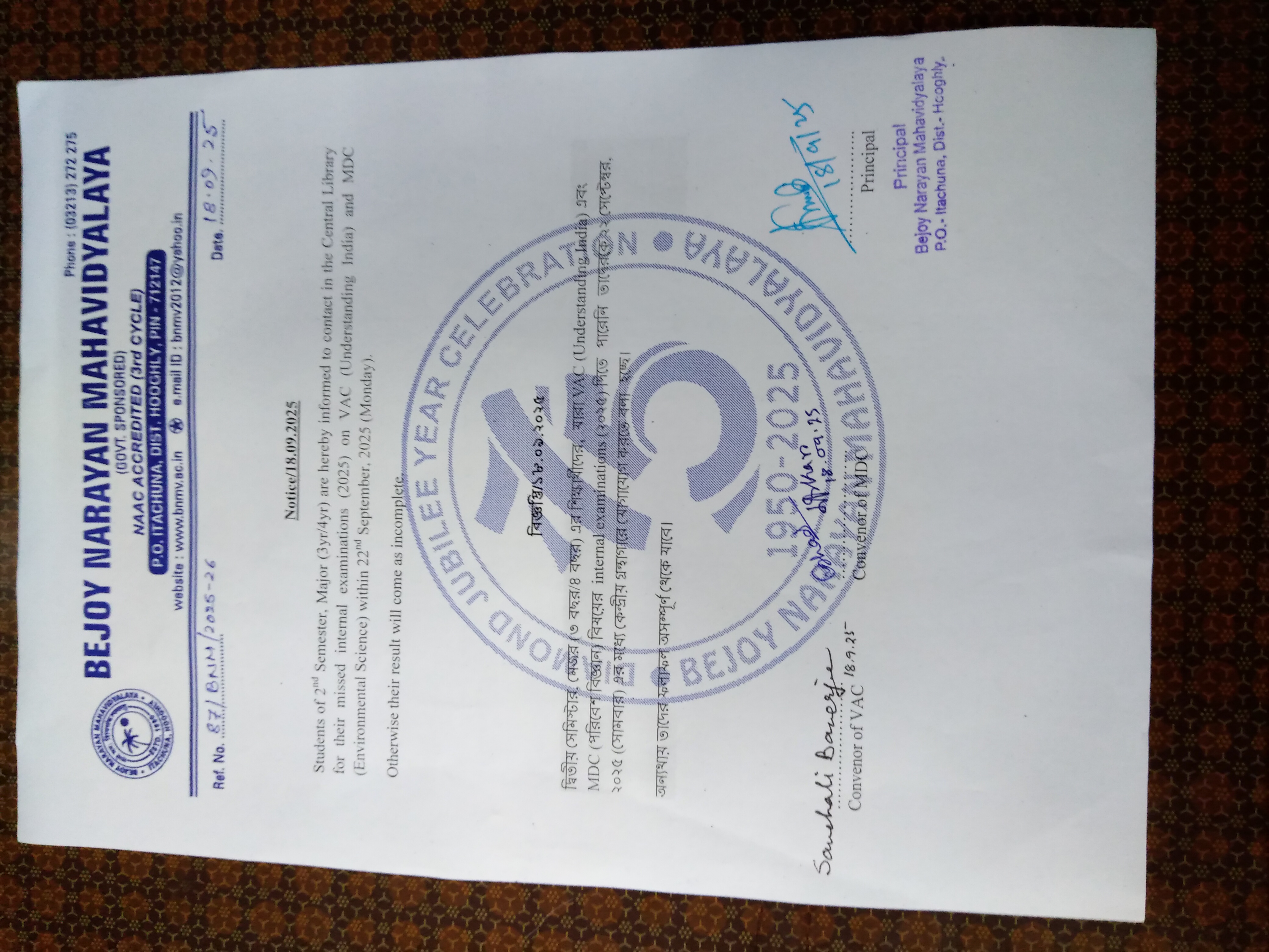 Notice for Internal Exam L2-2 (AECC) SEM-IV (Dept. of English)
