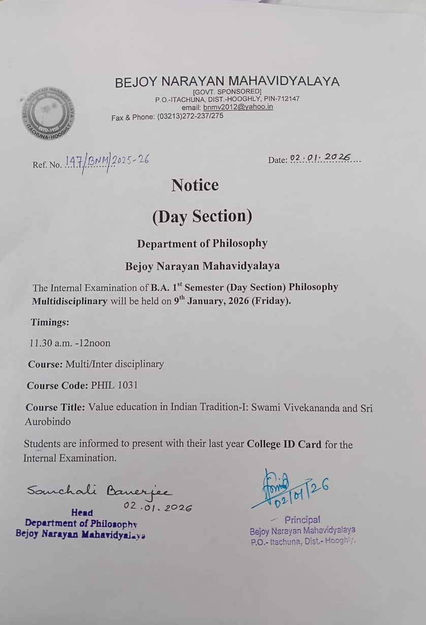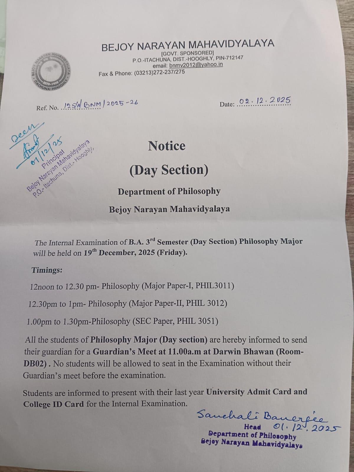 Internal Exam of Sem-I 2025 Philosophy Multidisciplinary Day
