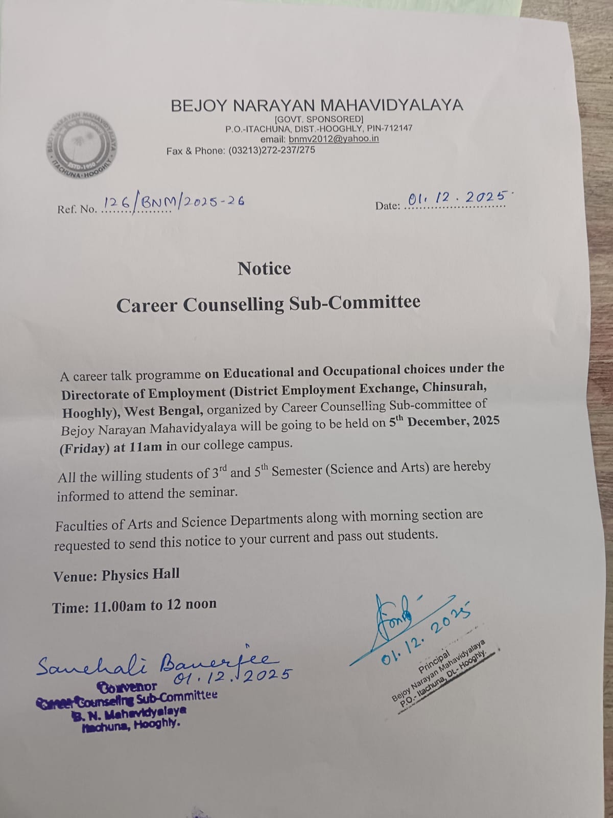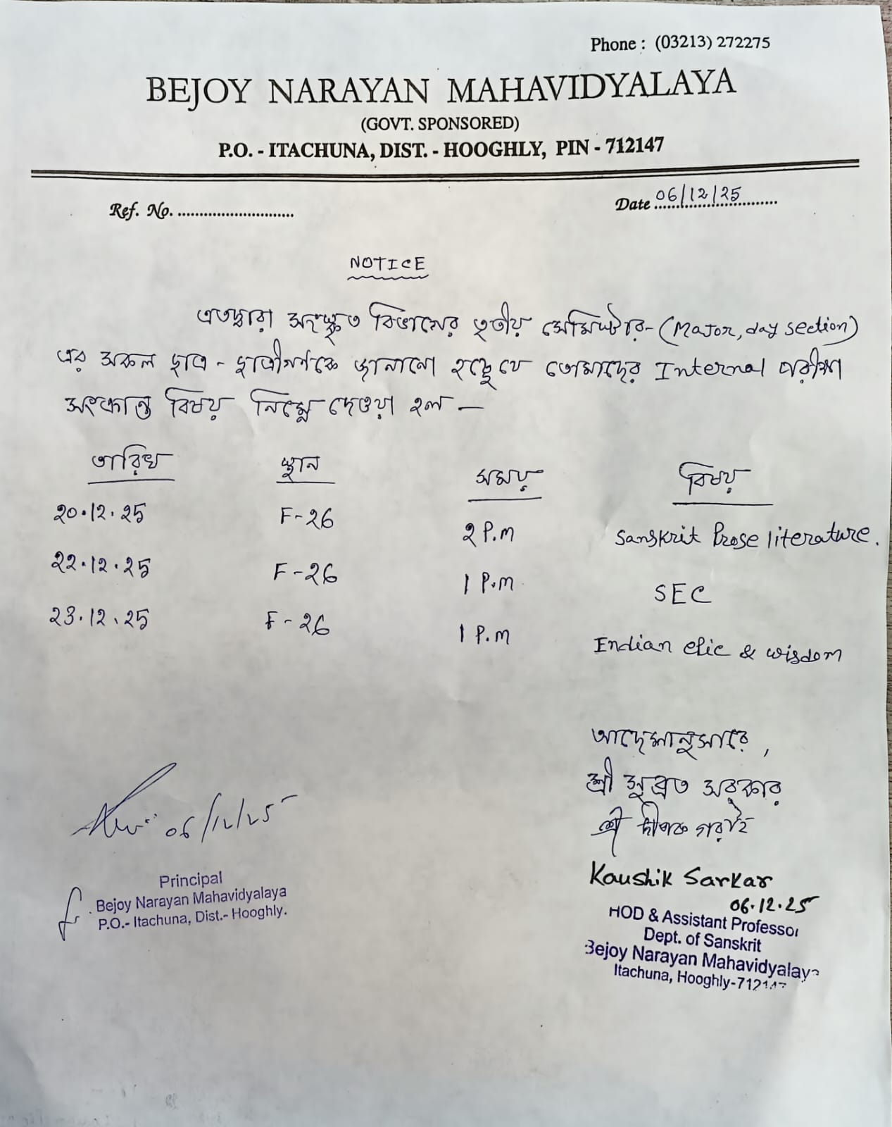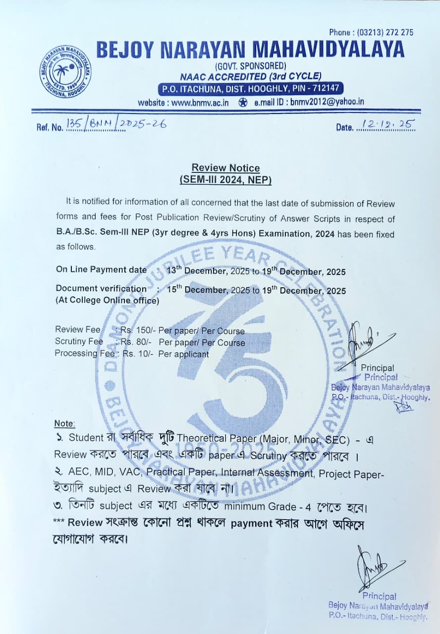 Notice regarding SEM-III, 2025 (NEP) Form Fill up