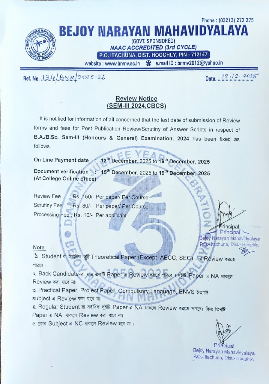 Notice regarding SEM-III ,2025 Form Fill up (CBCS)