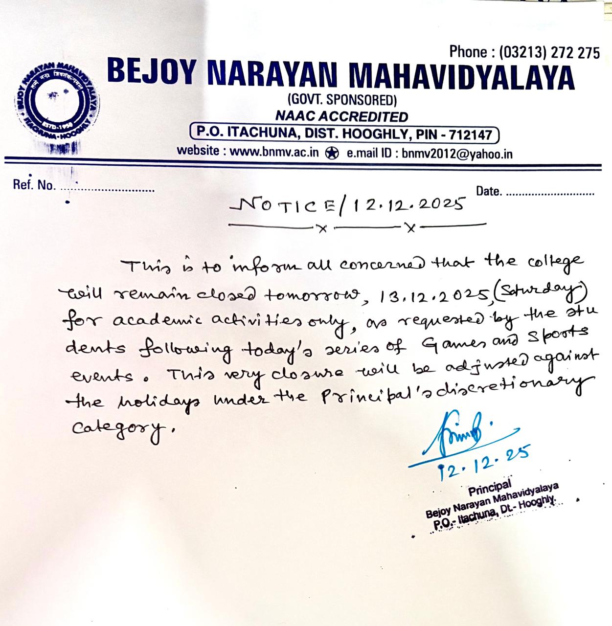 Holiday Notice regarding Birthday of Swami Vivekananda & Makar Sankranti